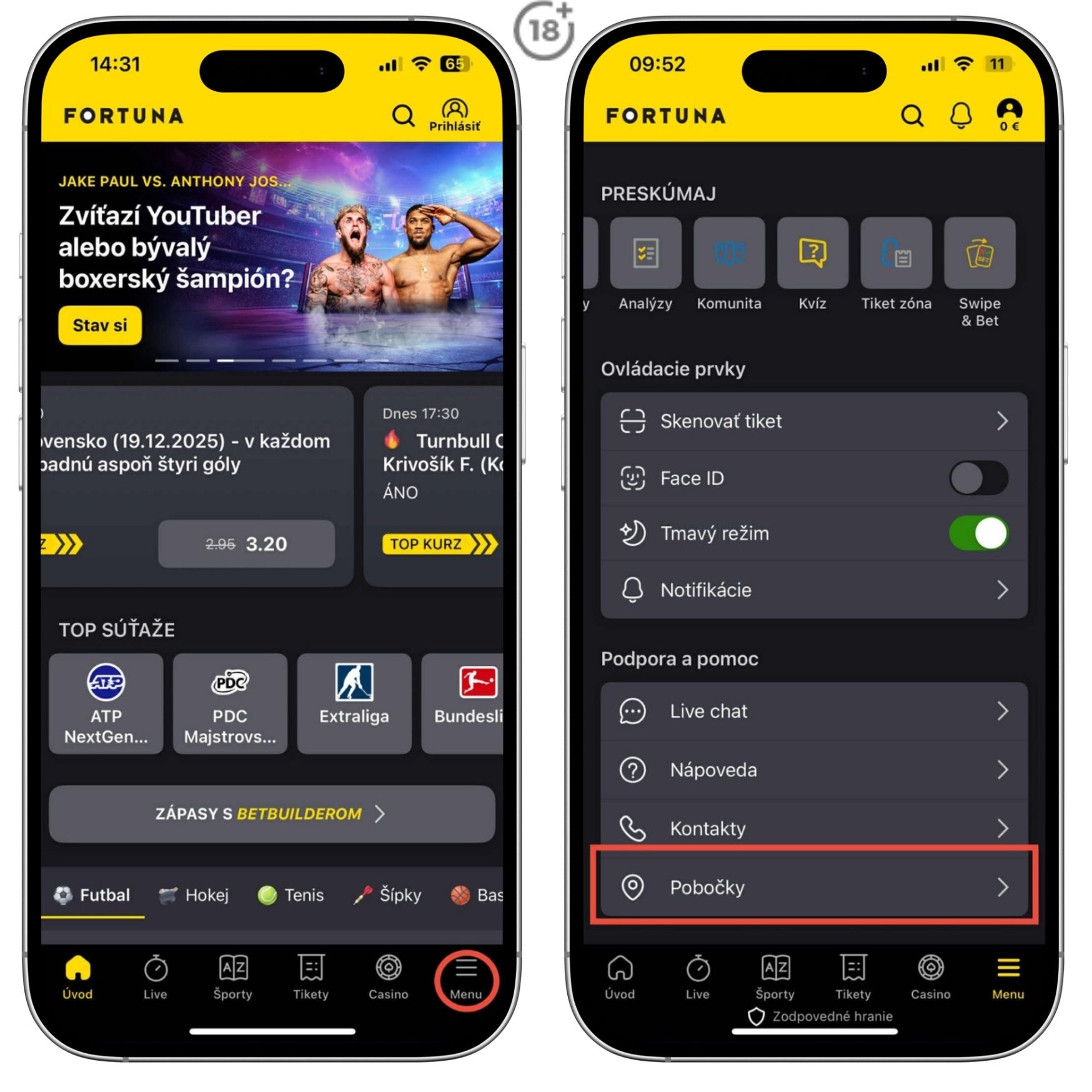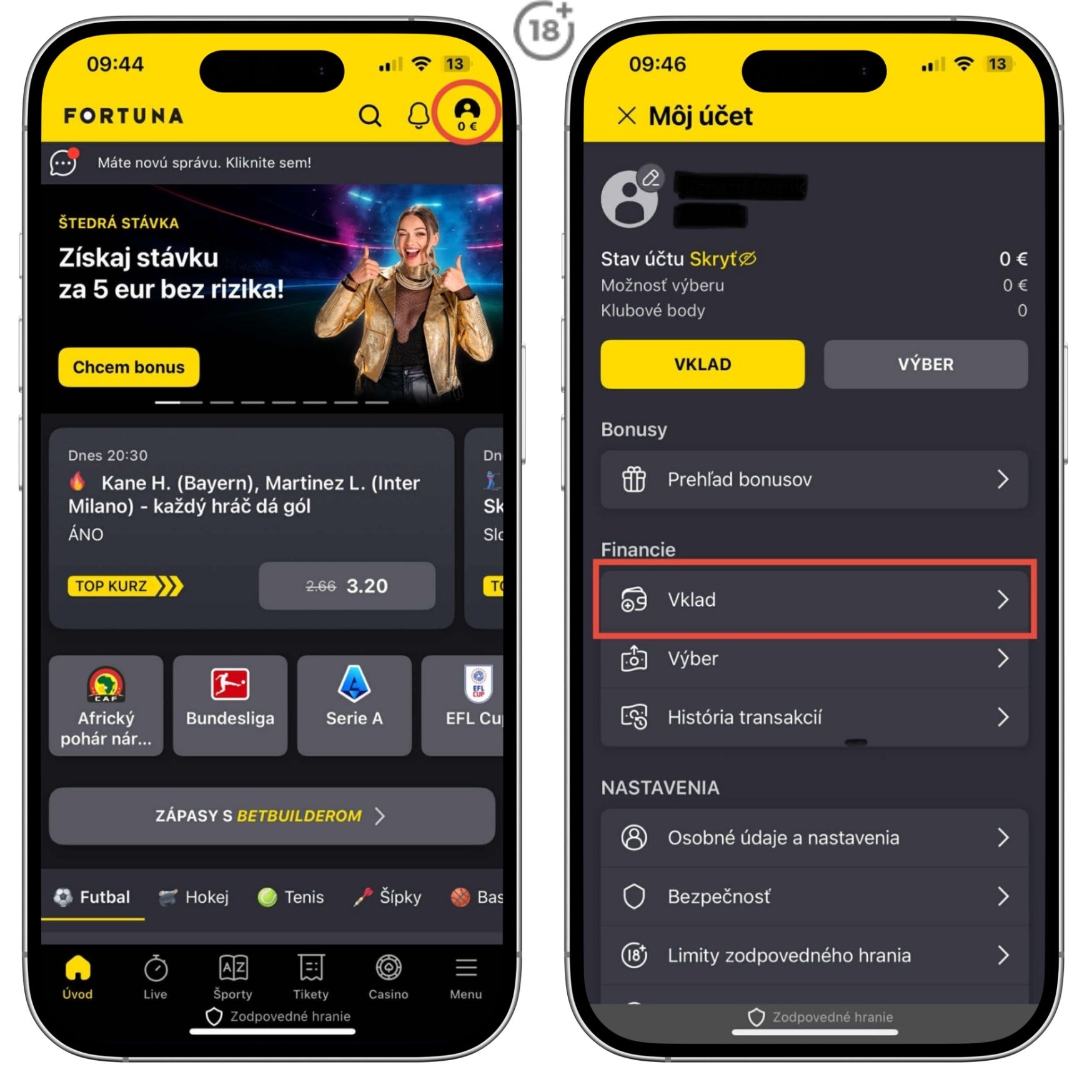 - Prihláste sa do svojho hráčskeho účtu Fortuna.
