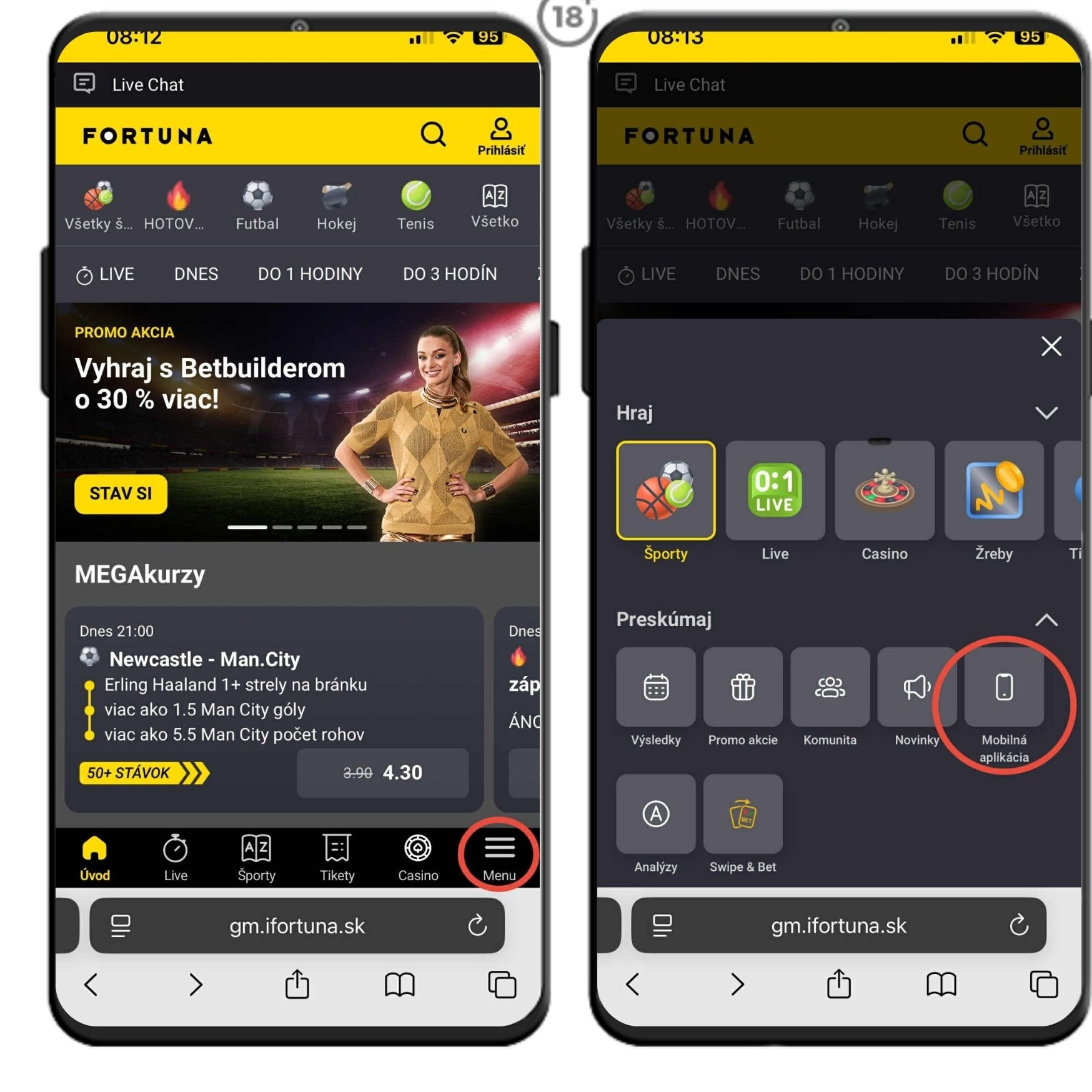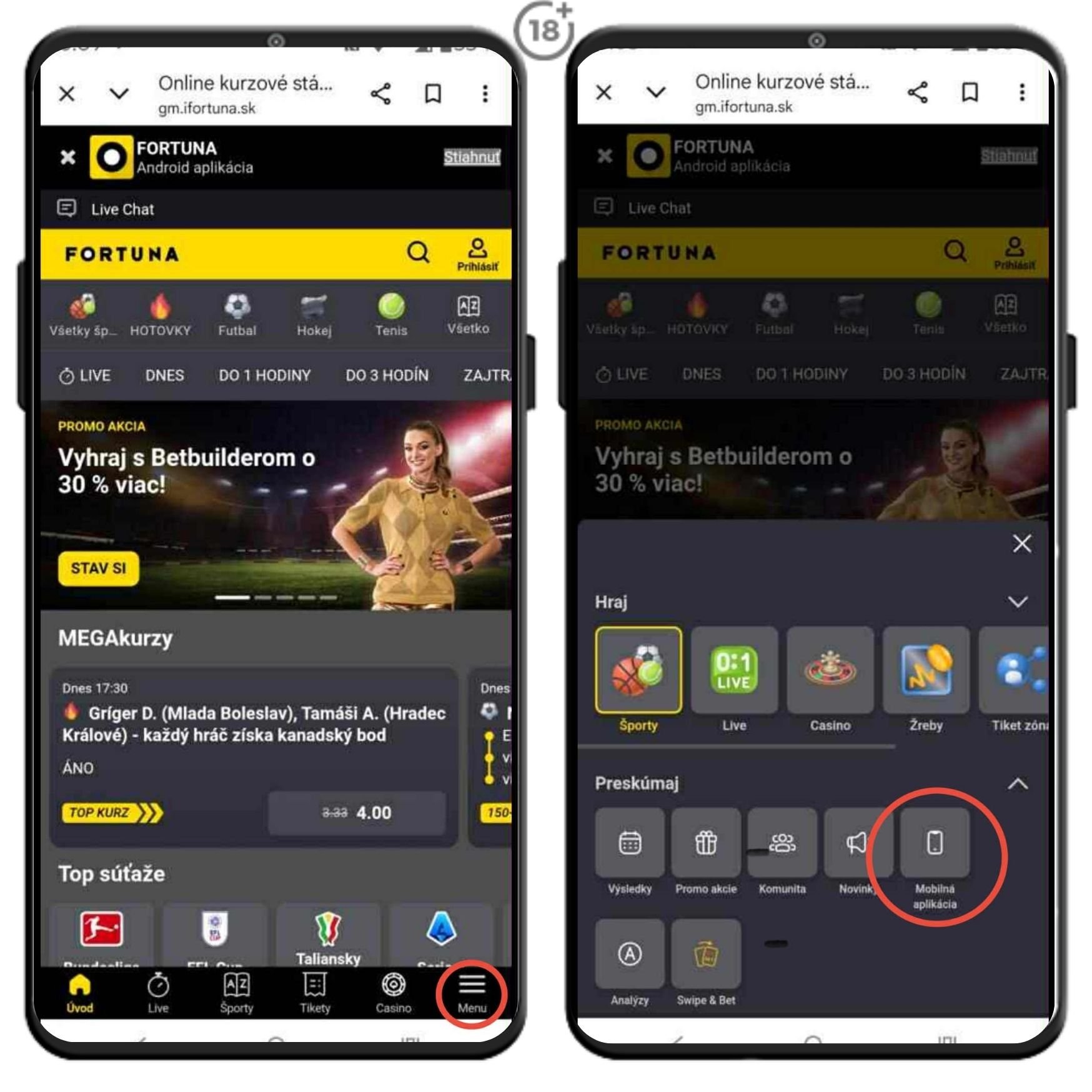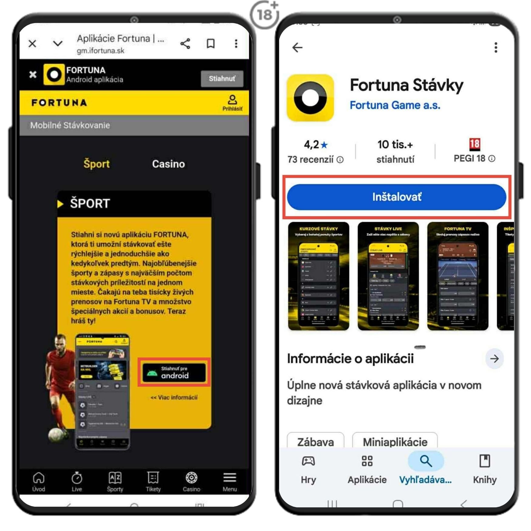 Inštalácia appky Fortuna pre zariadenia s Androidom